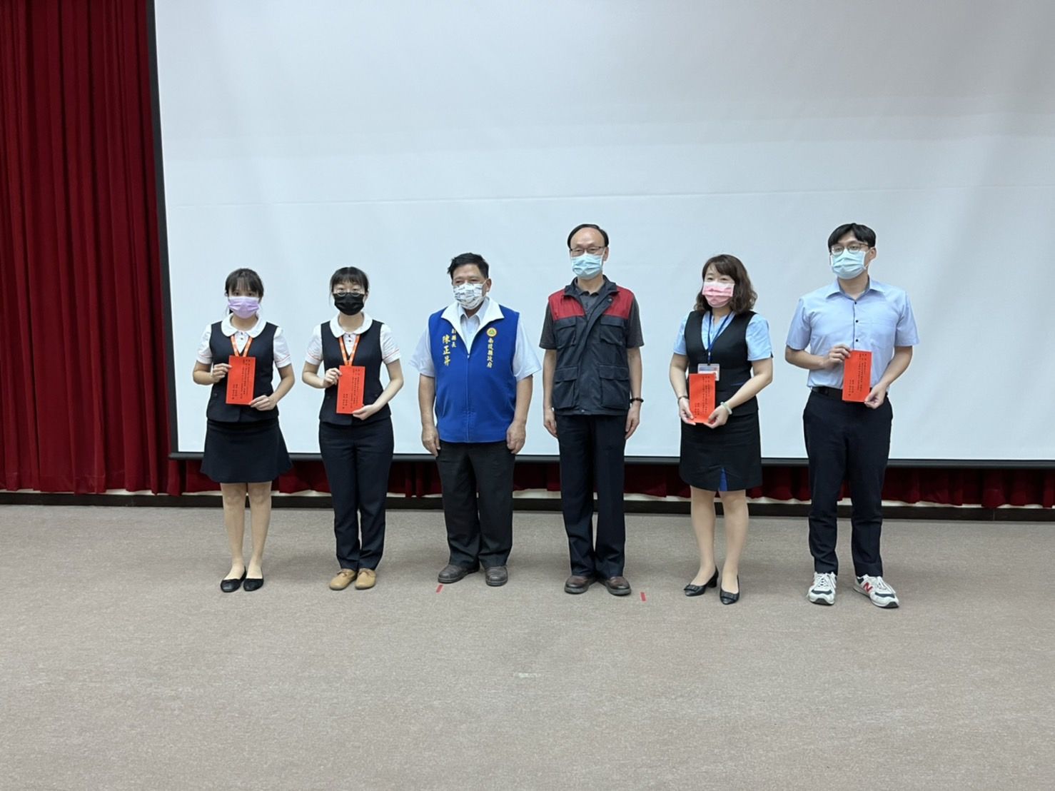 副縣長陳正昇林明溱及警察局局長黃永志於今(25)日在治安會報中公開表揚協助防制詐欺有功之金融機構行員。
